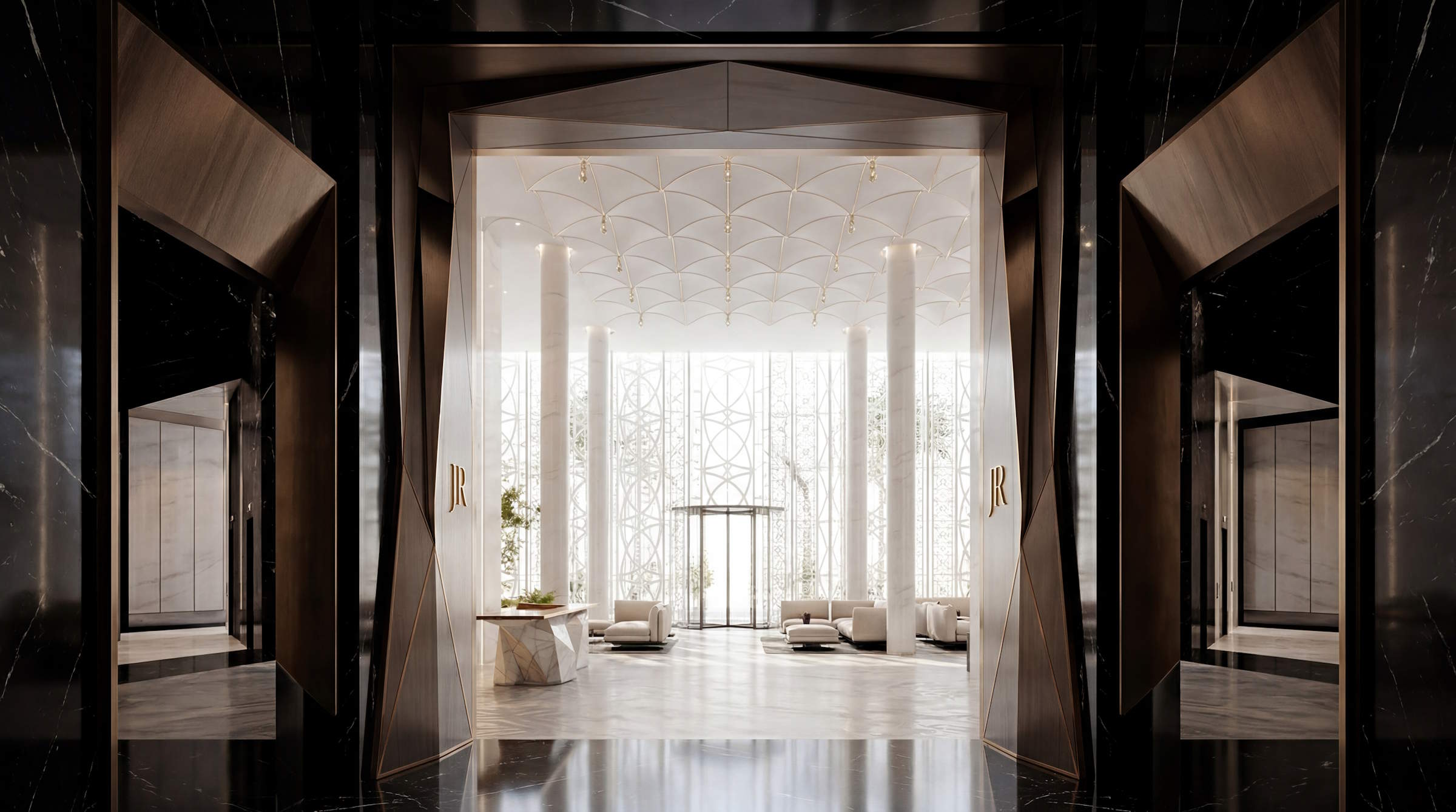 The towers were designed by Marco Casamonti of Archea Associati — an Italian firm with a strong international track record — in close collaboration with John Richmond himself. For the first time in the brand's history, its visual language and character are expressed through architecture and interiors: from the facade to the finishing details and furniture.
